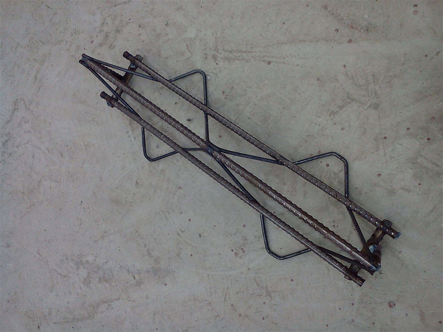 桁架鋼筋在可拆卸鋼筋桁架樓承板的應(yīng)用??刹鹦朵摻铊旒軜浅邪灏ǖ啄:椭苯卿摻铊旒?;每條鋼筋桁架分別通過(guò)位于一排的多個(gè)連接扣和底模連接;連接扣上部開(kāi)設(shè)有矩形槽,矩形槽的側(cè)面對(duì)應(yīng)開(kāi)設(shè)有卡槽,鋼筋桁架的兩下弦鋼筋分別卡設(shè)在連接扣的兩卡槽內(nèi),連接扣通過(guò)緊固件與底模固定連接。由于連接扣對(duì)應(yīng)設(shè)置有兩個(gè)卡槽,兩下弦鋼筋卡設(shè)在同一連接扣的兩卡槽內(nèi),在混凝土重力作用下,兩下弦鋼筋雖然形成大小相同、方向相反的兩個(gè)推力,但對(duì)于每個(gè)連接扣來(lái)說(shuō),同時(shí)作用其上的大小相同、方向相反的兩個(gè)推力相互抵消,因此,這兩個(gè)推力不會(huì)通過(guò)連接扣傳遞到底模上而使底模產(chǎn)生拉伸變形,也不會(huì)使連接底模與連接扣的緊固件因承受剪切力而給后續(xù)拆卸造成困難。